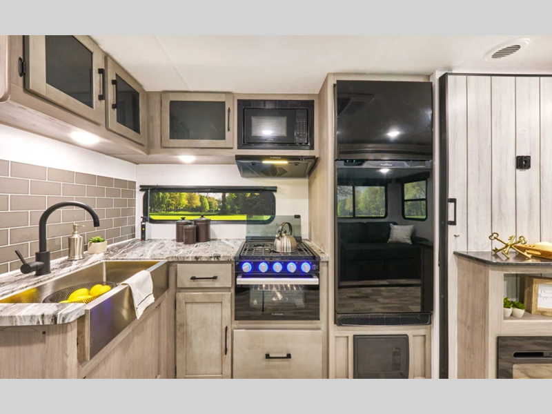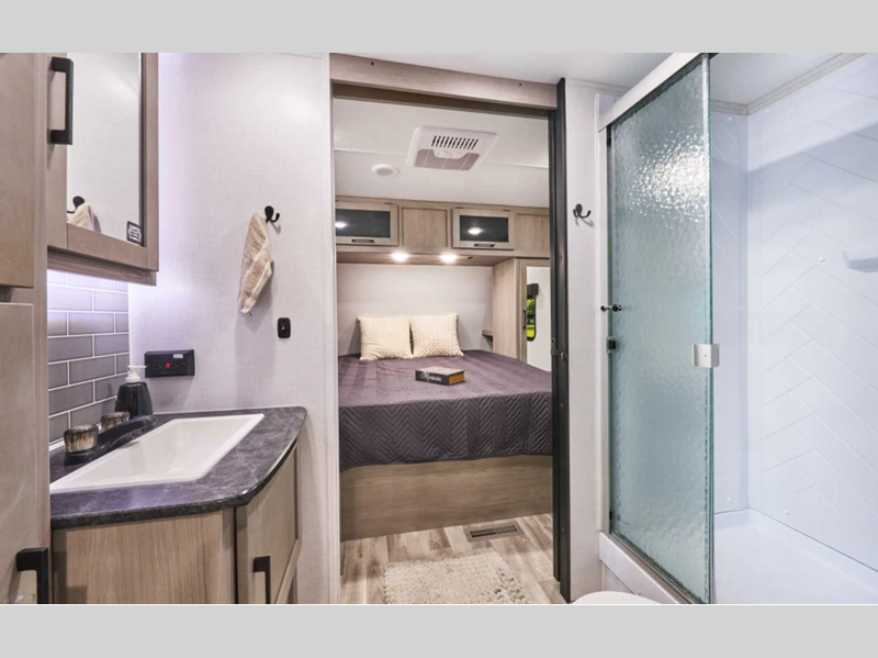 Sleeps 5 Length 21 ft 5 in Ext Height 9 ft 2 in Int Height 6 ft 8 in Interior Color Carbon, Savannah Hitch Weight 415 lbs Dry Weight 2900 lbs Cargo Capacity 1080 lbs Fresh Water Capacity 21 gals Grey Water Capacity 28 gals Black Water Capacity 28 gals Available Beds Queen Refrigerator Type 12V Refrigerator Size 10 cu ft Number of Awnings 1 LP Tank Capacity 20 lbs Water Heater Type On Demand Tankless AC BTU 13500 btu Awning Info 8' Power w/LED Light Axle Count 1 Number of LP Tanks 1 Shower Type Neo-Angled Similar Floorplans