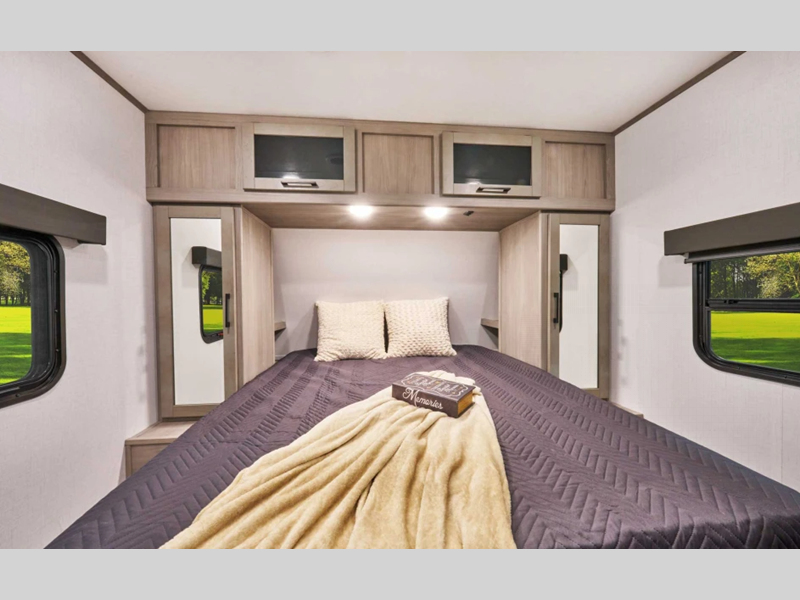 Sleeps 5 Slides 1 Length 29 ft Ext Height 11 ft Int Height 6 ft 8 in Interior Color Carbon, Savannah Hitch Weight 550 lbs Dry Weight 5226 lbs Cargo Capacity 2324 lbs Fresh Water Capacity 44 gals Grey Water Capacity 39 gals Black Water Capacity 28 gals Number Of Bunks 1 Available Beds Queen Refrigerator Type 12V Refrigerator Size 10 cu ft Number of Awnings 1 LP Tank Capacity 20 lbs Water Heater Type On Demand Tankless AC BTU 13500 btu Awning Info 14' Power Adjustable w/LED Lighting Axle Count 2 Number of LP Tanks 1 Shower Type Standard Similar Floorplans