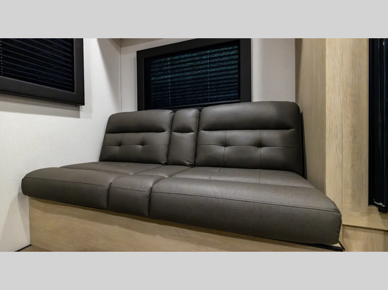 The enclosed underbelly will help protect against rock and debris as you travel to the campground, and the straight axle with electric brakes for seamless navigating. Inside, a tankless water heater will provide endless hot showers and blackout shades for restful nights. There are a few options that can be added to further customize your trailer, such as an optional power tongue jack and an optional 200W solar panel for off-grid capabilities.
