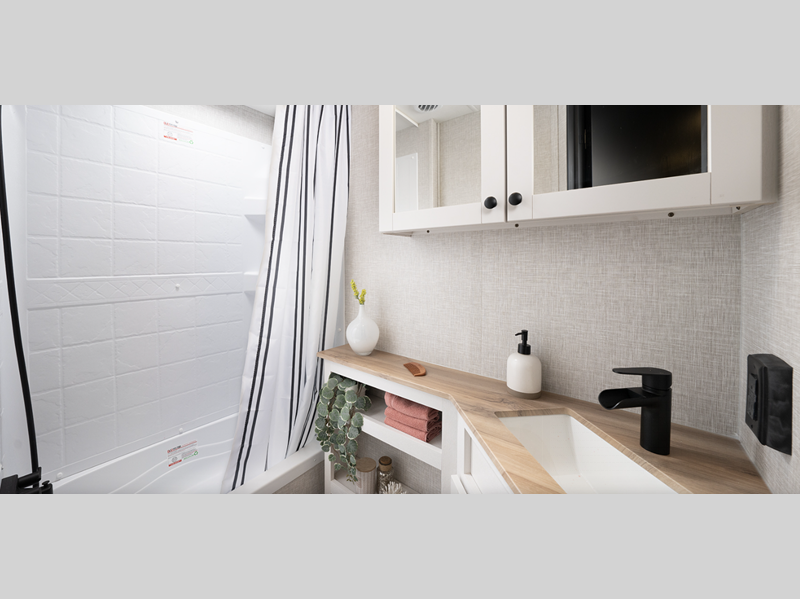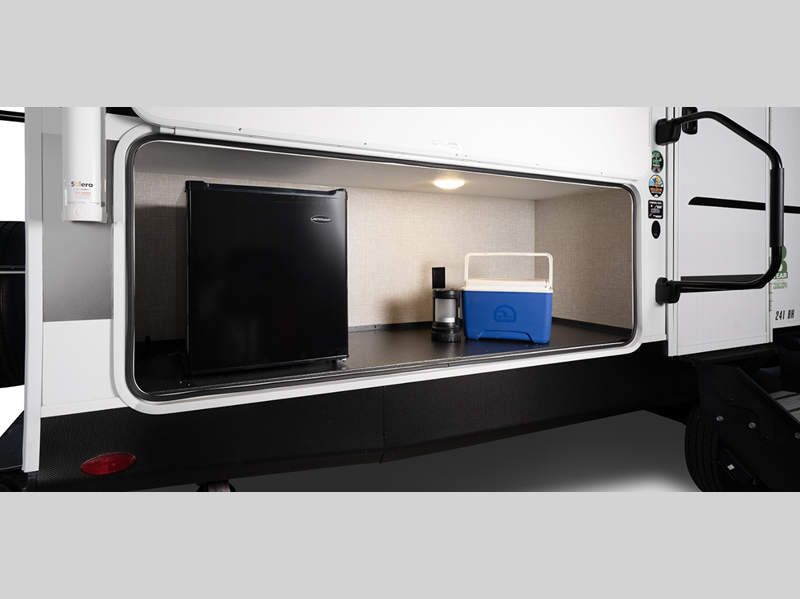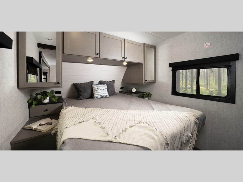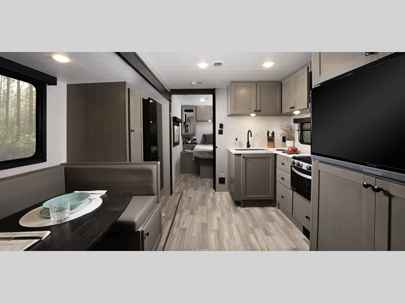 Sleeps 4 Slides 1 Length 23 ft 3 in Ext Height 11 ft Int Height 6 ft 9 in Interior Color Washed Driftwood Hitch Weight 480 lbs GVWR 6400 lbs Dry Weight 4840 lbs Cargo Capacity 1560 lbs Fresh Water Capacity 45 gals Grey Water Capacity 29 gals Black Water Capacity 29 gals Tire Size ST205/75R14D Furnace BTU 30000 btu Available Beds Queen Refrigerator Type 12V Refrigerator Size 10 cu ft Cooktop Burners 3 Number of Awnings 1 LP Tank Capacity 30 lbs Water Heater Capacity 6 gal Water Heater Type Gas/Electric AC BTU 15000 btu TV Info LR Smart HDTV Awning Info 12' Power w/LED Lighting Axle Count 2 Number of LP Tanks 2 Shower Type Radius Similar Floorplans