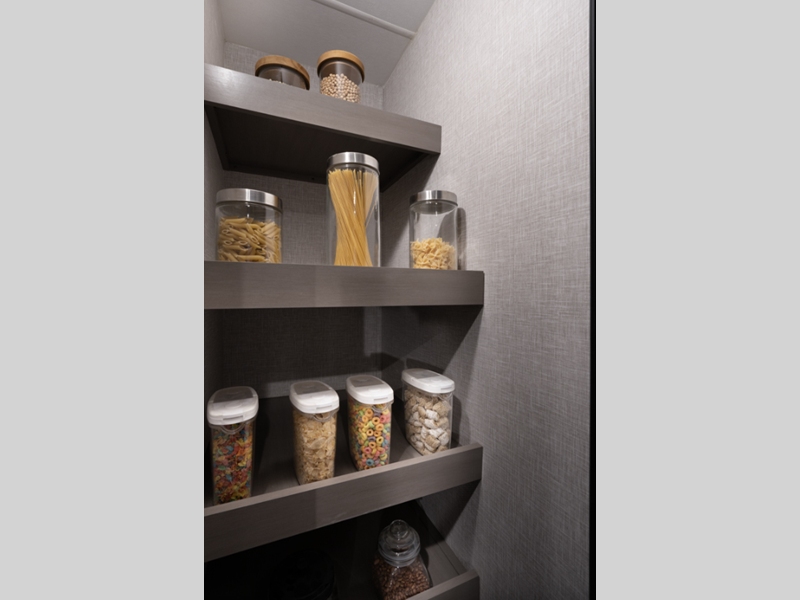 - Oversized pass-through storage with motion lighting